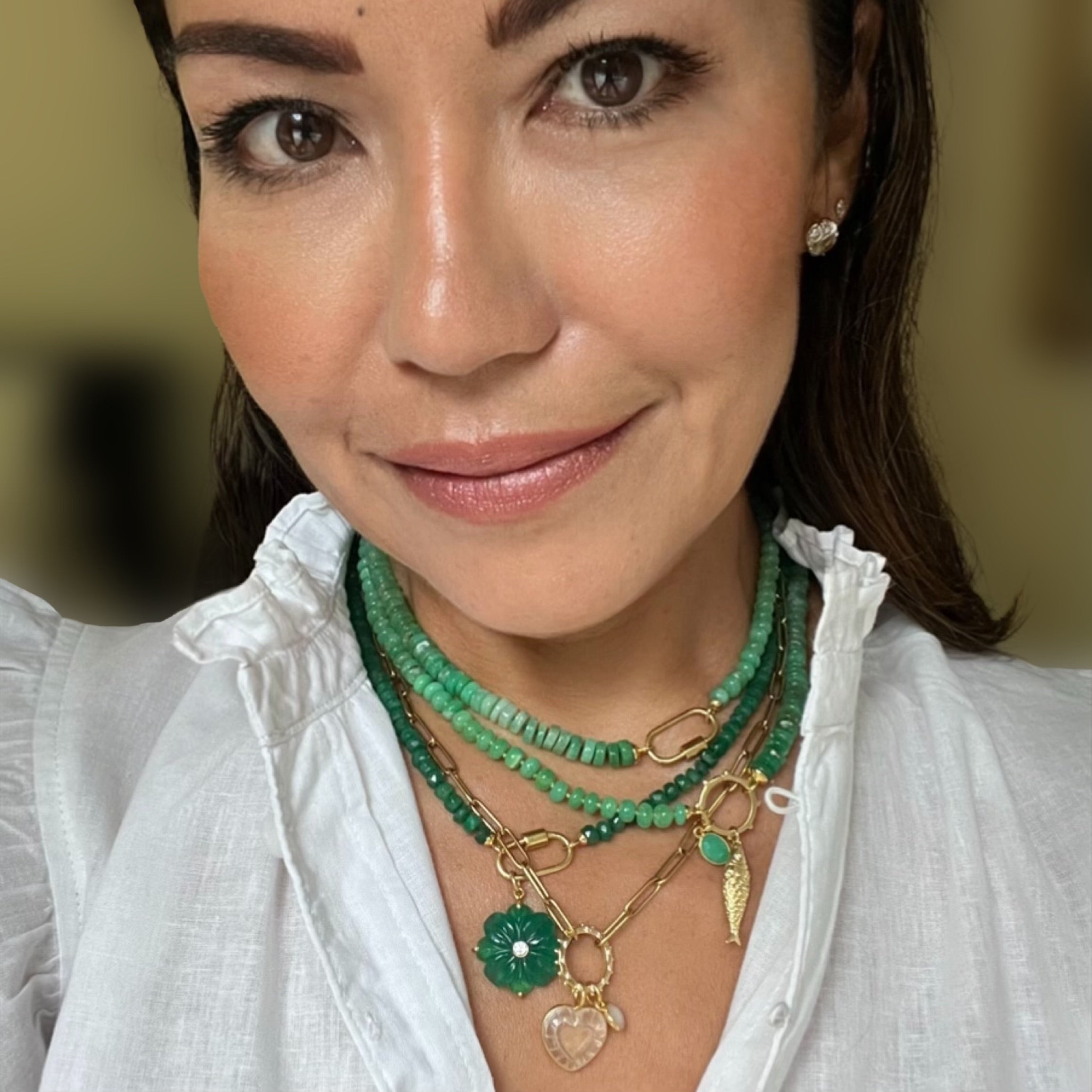 These necklaces are dainty and elegant, yet far from simple. Each piece is hand-knotted with silk thread by Priscilla, blending artisanal craftsmanship with refined detail.