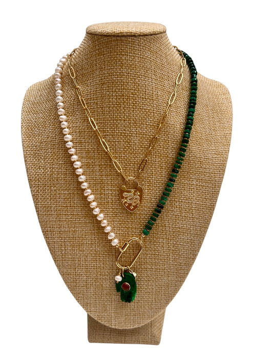 Special Edition: Pearl and Malachite Gemstone Necklace
