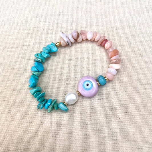 Mel Evil Eye Pink Opal and Turquoise Bracelet