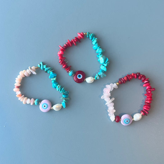 • Mel Evil Eye Pink Opal and Turquoise Bracelet