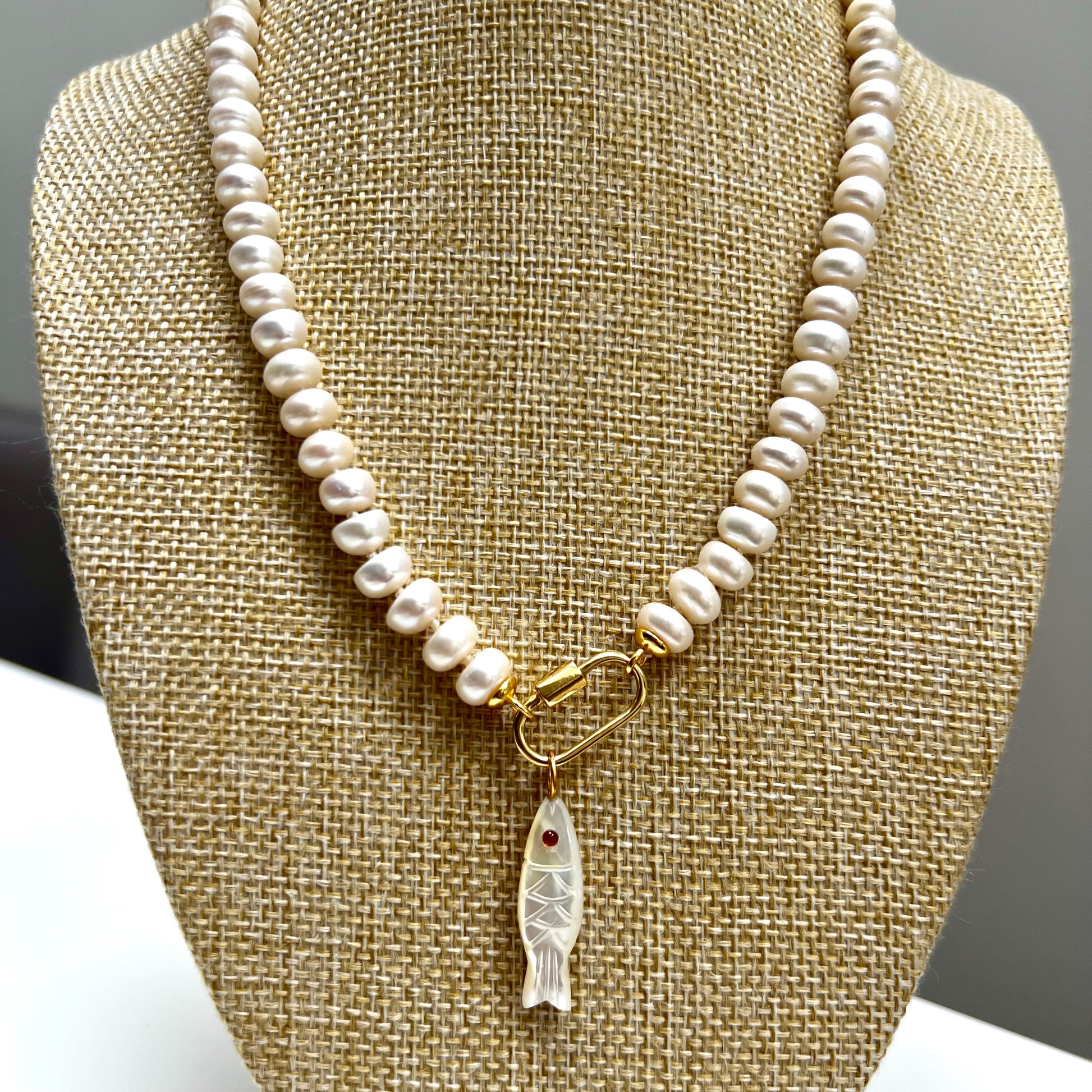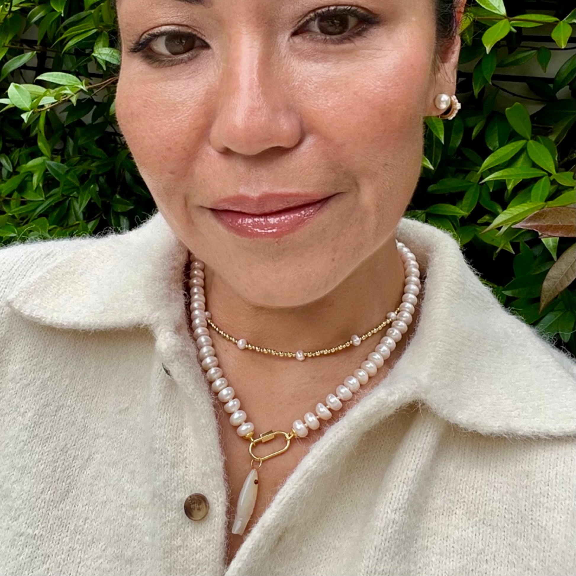 A modern twist on the traditional strand of pearls. This Ana-Maria is made with ivory fresh water rondelle-shaped pearls.