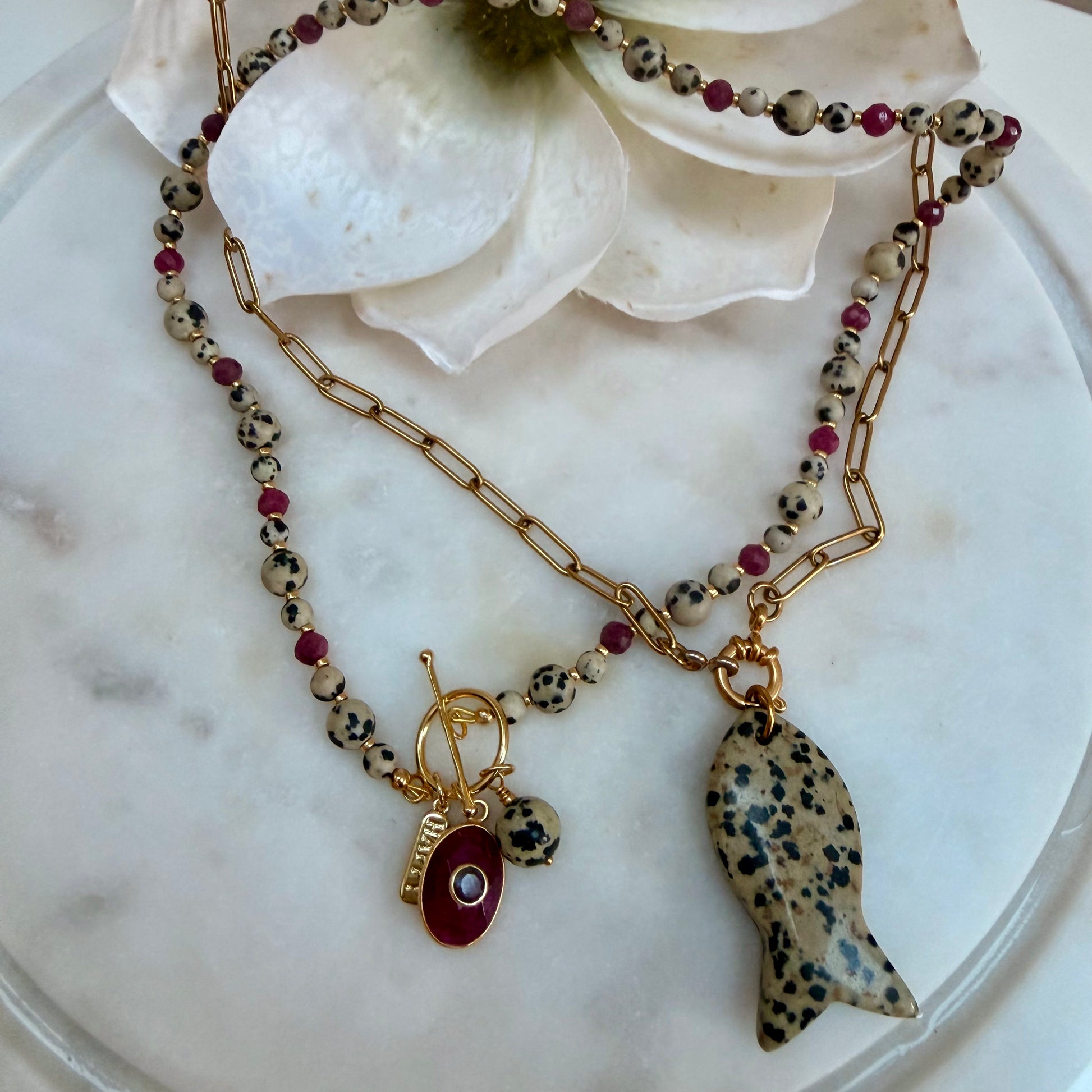 Limited Edition Dalmation Jasper and Ruby Necklace